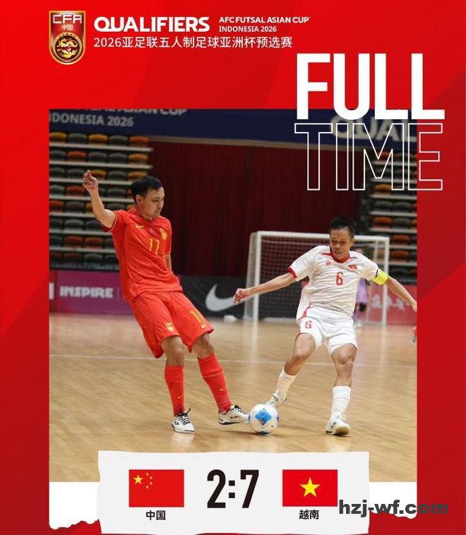开场仅仅3分钟,中国队0-3落后,随后半场结束变为0-5继续落后,下半场,中国队打进挽回面子的两球,最终2-7倒下,连续两届输给越南队。