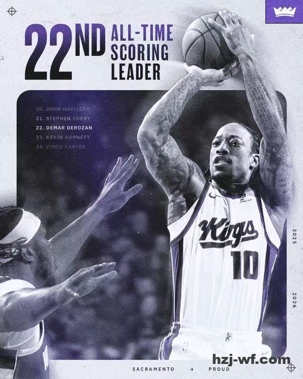 德罗赞NBA生涯常规赛总分超越加内特26071分,升至NBA历史得分榜第22位迎来里程碑。