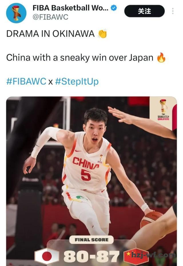 目前FIBA官方已经将文案修改为了:“冲绳神剧本!中国男篮在下半场翻盘,击败日本队。”