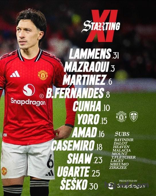 北京时间4月14日03:00,英超第32轮的一场对决。曼联坐镇主场,迎战利兹联。赛前,曼联的阵容公布如下: 完美.体育新闻中心 完美.(中国)体育官方网站-365WM SPORTS新闻中心 墨菲:罗梅罗哭是因为世界杯,绝不是觉得自己下场热刺要输了 曼联vs利兹联:布鲁诺-费尔南德斯、卡塞米罗首发,卡尔弗特-勒温、奥卡福尔出战