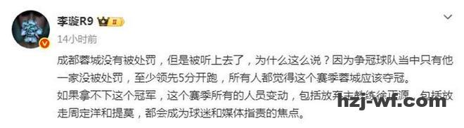 申花扣10分,海港、国安、浙江各扣5分,泰山扣6分,成都蓉城机会来了。1月29日,媒体人李璇社媒写道:“成都蓉城没有被处罚,但是被听上去了,为什么这么说?因为争冠球队当中只有他一家没被处罚,至少领先5分开跑,所有人都觉得这个赛季蓉城应该夺冠。 如果拿不下这个冠军,这个赛季所有的人员变动,包括放弃主教练徐正源,包括放走周定洋和提莫,都会成为球 迷和媒体指责的焦点。”